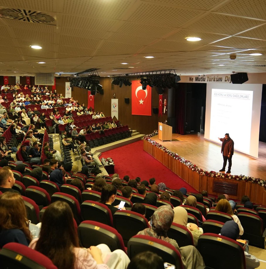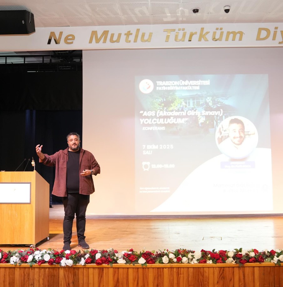 Mahmut Goloğlu Kültür Merkezinde gerçekleştirilen konferansa Dekan Yardımcılarımız Doç. Dr. Bircan Eyüp ve Dr. Öğr. Üyesi Gökhan Çepni ile akademisyenlerimiz ve çok sayıda öğrencimiz katıldı. Öğrencilere “Gelişim ve değişimleri takip ederek fırsatları yakalayın. Her alanın çarpanları ve puanları eşit olmuyor; siz özellikle Türk Millî Eğitim Sistemi, Türkçe ve Matematik alanlarına ağırlık verin” uyarılarında bulundu. Öğretmen adaylarına spesifik olarak derlediği soru başlıklarını da aktaran Koca, “Ülke olarak AGS ile yeni tanıştığımız için bu konuda belirsizlikler mevcut. Seneye devam edip etmeyeceği de kesin değil fakat siz her an hazırlıklı olun. Bu sınav gözünüzü korkutmasın, sınavı bir fırsat olarak görün. Fırsatları zamanında ve en verimli şekilde kullanın. Bir yıl olur bölümünün birincisi bile işe giremez; bir sonraki sene binlerce kişi alınır. KPSS içeriklerini iyi okuyun, mümkünse ALES’e girin. AGS koşullarını gözetin, bu sınavlar birbirini olumlu etkiler. Doğru notları alın, ders kitaplarınızı atmayın, haritaları, yapay zekâyı en optimal düzeyde kullanın. AGS’ye eğitim fakültesi mezunu olmayan, formasyon eğitimi olmayan da girebiliyor fakat onlar sizler gibi formasyonlara uzak olduklarından sizin şansınız doğal olarak her zaman yüksektir. Birinci sınıftaki Eğitime Giriş kitabınızı saklayın. Sınavda temel kuramlar oradakinin aynısıdır. Millî Eğitim Bakanlığı tarafından yeni geliştirilen Maarif Modelini okuyun, bileşenleri tablo yapın, hazırlığınız tamam sayılır. Yeni açılan 14 aylık eğitim akademileri AGS sınavı için değil; buraların teknik amacı hizmet içi öğretmenlikte olanları geliştirmektir. Trabzon'a en yakın olan Gümüşhane’de hazırlanan akademi ama bu akademilerin sayısı artırılacaktır. AGS için şahsi değerlendirmem, sistem olarak yanlıştır; hizmet içi uygulaması olarak doğru bir planlamadır. Akademiye evet ama atandıktan sonra. Çünkü burada zaten staj dâhil gerekli eğitimleri aldınız. Size kendi ders kitaplarımızdan alan sorusu soracaklar; yapamazsınız diyenlere kulak asmayın. Çünkü siz yarının öğretmenlerisiniz ve bu ülkenin cumhurbaşkanını, bakanlarını, komutanlarını yetiştiren sizlersiniz” diye konuştu.