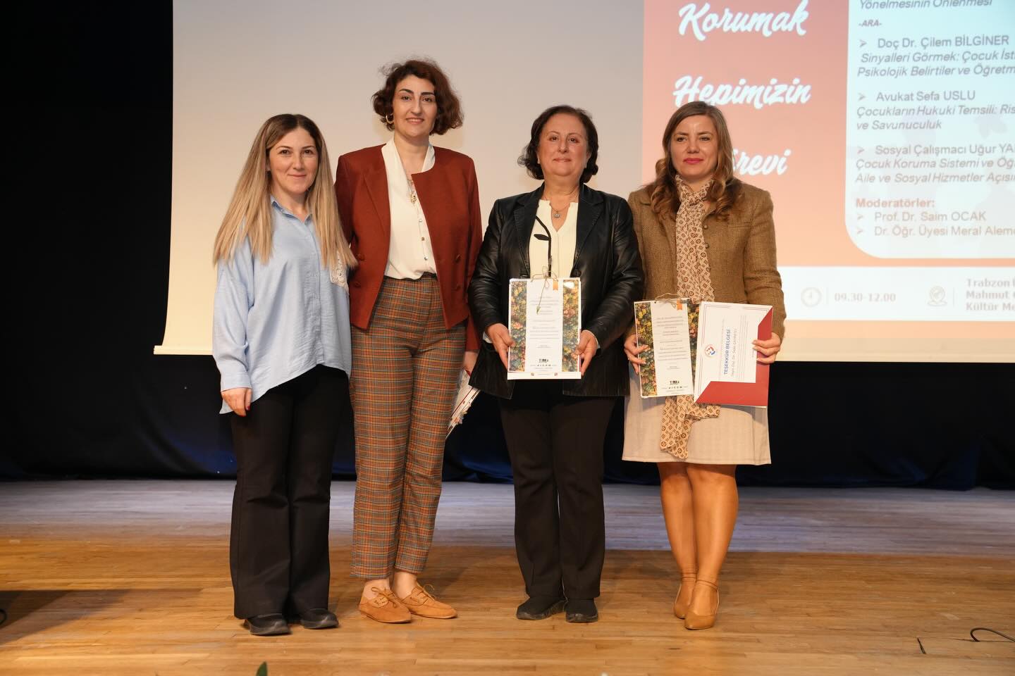 Mahmut Goloğlu Kültür Merkezinde gerçekleştirilen panelde Üniversitemiz Hukuk Fakültesi Öğretim Üyesi Doç. Dr. Seda Gayretli Aydın (Çocuğun İhmal ve İstismarı Karşısında Öğretmenin Bildirim Yükümlülüğü), Polis Memuru Nizamettin Şahin (Çocuk Hakları ve Emniyetin Rolü), Makine Yüksek Mühendisi Nilgün Turan (Trabzon’da İnsan Ticaretinin Çocuklara Yönelmesinin İncelenmesi), Karadeniz Teknik Üniversitesinden Öğretim Üyesi Doç. Dr. Çilem Bilginer (Sinyalleri Görmek, Çocuk İstismarında Psikolojik Belirtiler ve Öğretmenin Rolü), Trabzon Barosu Temsilcisi-Avukat Sefa Uslu (Çocukların Hukukî Temsili, Riskler, Haklar ve Savunuculuk), Sosyal Çalışmacı Uğur Yaranlı (Çocuk Koruma Sistemi ve Öğretmenin Yeri- Aile ve Sosyal Hizmetler Açısından Bakış) konularında sunumlarda bulundu.
