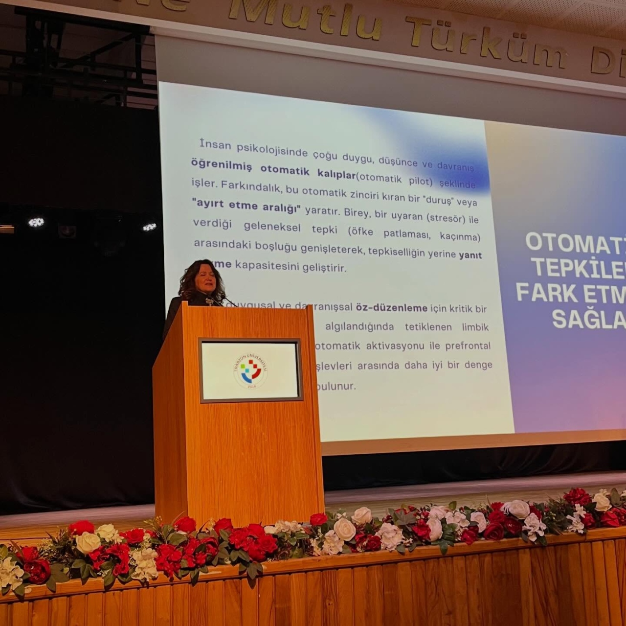 Üniversitemiz Psikolojik Danışma ve Rehberlik Uygulama ve Araştırma Merkezi Müdürü Öğr. Gör. Dr. Hanife Aydın ve Müdür Yardımcısı Dr. Öğr. Üyesi Serpil Reisoğlu tarafından öğrencilerimize, akademik ve idari personelimize zihinsel farkındalığın ne olduğu ve nasıl arttırılabileceği, yaşam dengesinin nasıl sağlanabileceği, stresle nasıl başa çıkılabileceği ve problemlerin nasıl ele alınabileceği hakkında kapsamlı bilgiler aktarıldı.