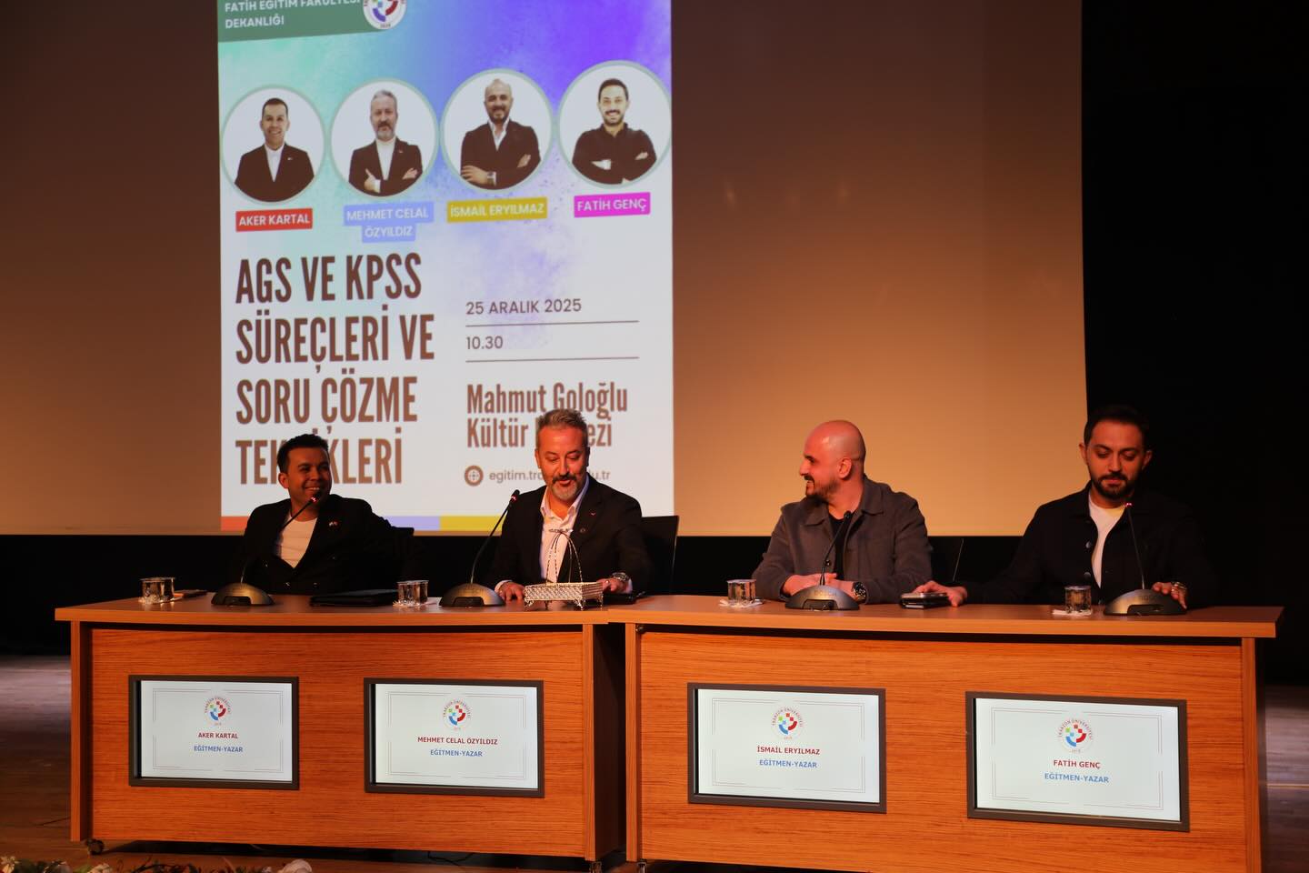 Fakültemizde, öğretmen adaylarının AGS ve KPSS hazırlık süreçlerini daha bilinçli ve etkili bir şekilde yürütebilmelerine katkı sağlamak amacıyla önemli bir söyleşi programı düzenlendi. Türkiye’de AGS ve KPSS alanında önde gelen eğitmenler arasında yer alan Aker Kartal, Mehmet Celal Özyıldız, İsmail Eryılmaz ve Fatih Genç’in katılımıyla gerçekleştirilen etkinlik, öğrenciler tarafından yoğun ilgiyle takip edildi.
